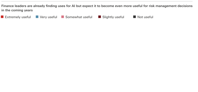 Around one in four (24%) senior finance leaders believe AI is currently very useful for risk management decisions, yet this jumps to 49% in three years’ time. These expectations are being backed by business investment given that 95% of senior finance leaders do not consider funding to be a key challenge to the implementation of AI.